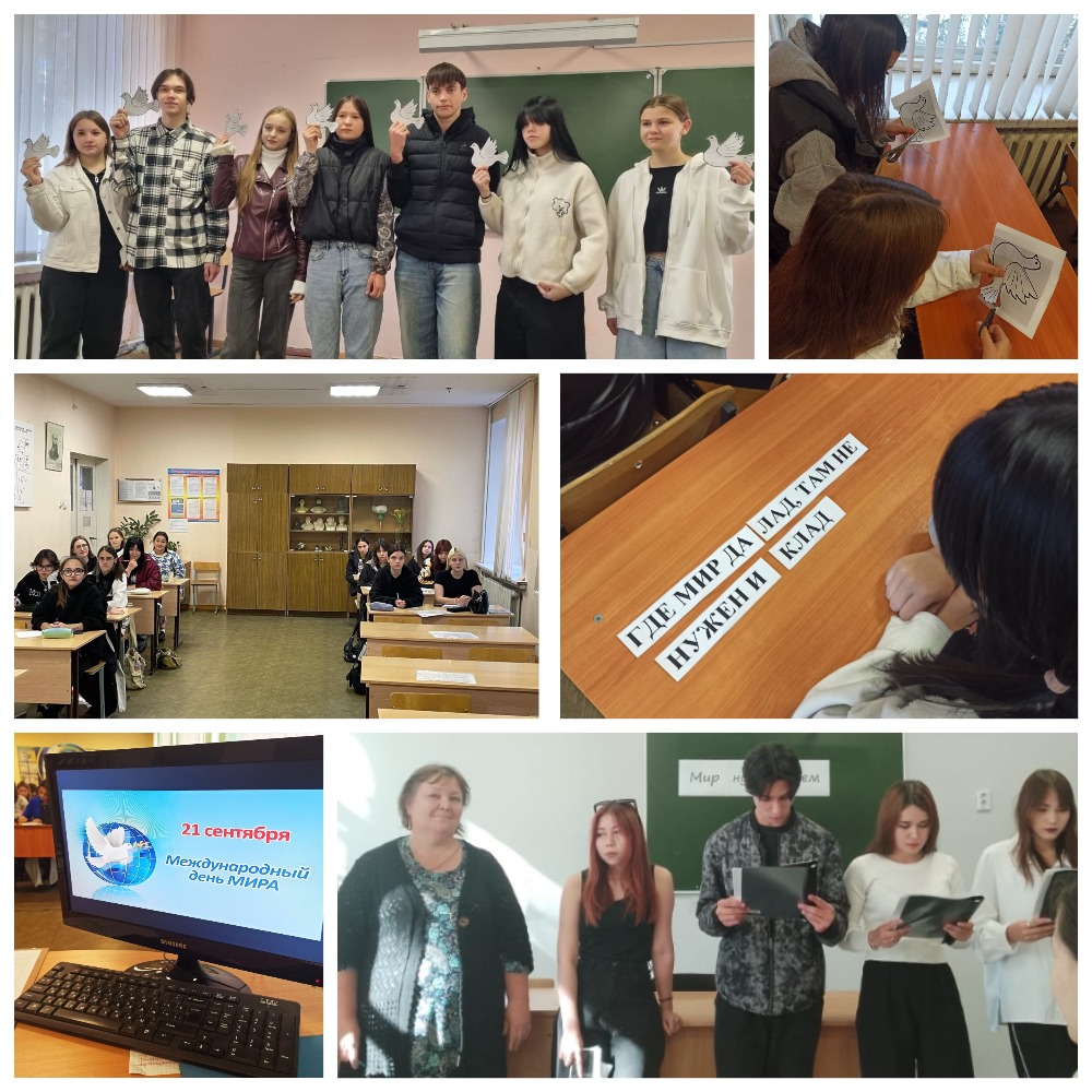 В рамках классного часа студенты поделились своими мыслями о том, что можно сделать в повседневной жизни для поддержания мира — начиная с доброжелательности в колледже и заканчивая толерантным отношением к людям разных национальностей и культур.