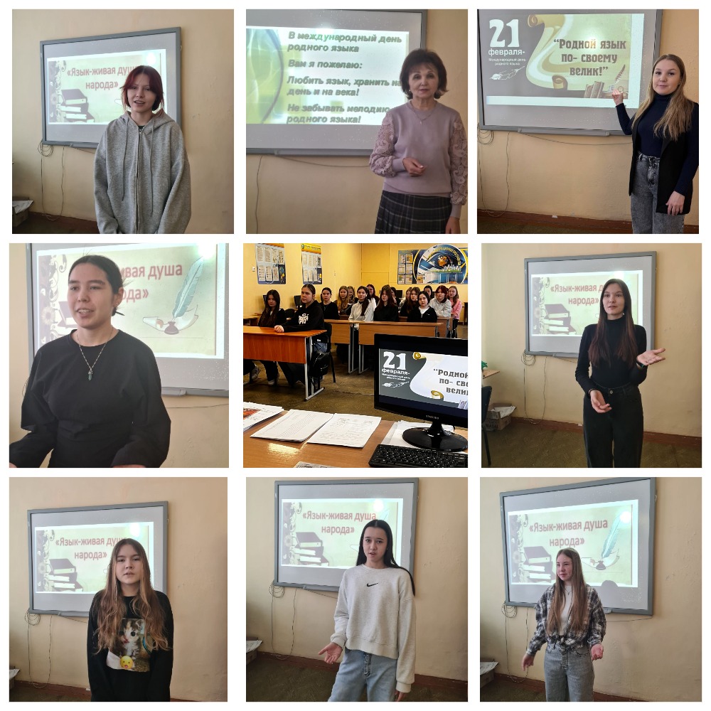 К этому дню в филиале УКИПиС в г. Стерлитамак прошел цикл мероприятий. Одним из них стала литературная композиция "Родной язык по-своему велик!". Обучающиеся познакомились с историей возникновения Дня родного языка, узнали о значимости родного языка в нравственном, духовном развитии каждой личности, о многообразии различных языков мира. Ребята зачитывали стихи, разгадывали загадки, объясняли смысл пословиц о родном языке. Преподаватели Каримова Р.Р. и Алексеева М.А. провели конкурс чтецов "Язык-живая душа народа". Разные жанры поэзии прозвучали в исполнении обучающихся на башкирском, татарском, чувашском и русском языках. Первое место заняла обучающаяся 18 группы Ишкулова Юля.
