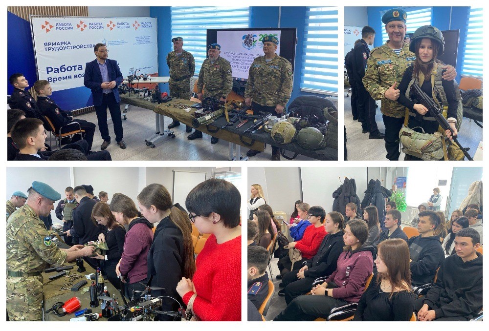 Студенты групп 14 и 16 Стерлитамакского филиала Уфимского колледжа индустрии питания и сервиса под руководством преподавателя Салимова В.Х. и заместителя заведующего филиалом по УПР Шаталиной Т.Н. посетили филиал ГКУ Республиканского центра занятости населения г. Стерлитамак в рамках работы Молодёжного клуба по патриотическому воспитанию молодежи и профориентационной работе. Была организована встреча с представителями "Ассоциации ветеранов ВДВ РБ". В ходе мероприятия студенты ознакомились с родом войск, предназначенных для охвата противника по воздуху и выполнения задач в его тылу по нарушению управления войсками, захвату и уничтожению наземных элементов высокоточного оружия, срыву выдвижения и развертывания резервов, нарушению работы тыла и коммуникаций, а также по прикрытию отдельных направлений, районов, открытых флангов, блокированию и уничтожению высаженных воздушных десантов, прорвавшихся группировок противника и выполнения других задач.