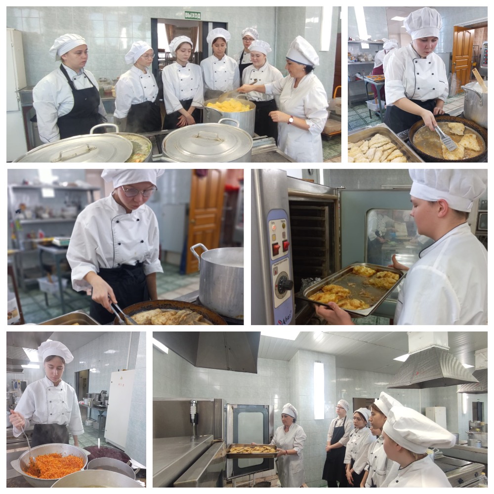 На базе практики "ООО Комбинат питания - 1", обучающиеся группы 36 Стерлитамакского филиала УКИП и С, под руководством мастера производственного обучения Тимиргалиевой Э.Ф., осваивают производственную практику по модулю "Приготовление, оформление и подготовка к реализации горячих блюд, кулинарных изделий, закусок разнообразного ассортимента". Во время практики обучающиеся закрепляют знания комбинирования способов приготовления, творческого оформления и подачи супов, горячих блюд, кулинарных изделий, закусок разнообразного ассортимента.