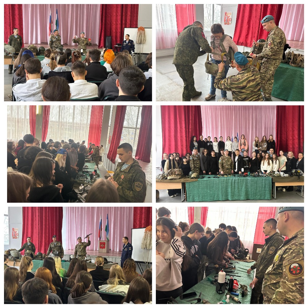 В рамках празднования 85-летия СПО в филиале ГБПОУ Уфимском колледже индустрии питания и сервиса в г. Стерлитамак состоялся важный и значимый урок мужества, направленный на воспитание патриотизма, стойкости и уважения к нашей стране. Его провели участники специальной военной операции- Казангулов Равиль Фанилевич и Семенов Дмитрий Олегович; Алексеев Станислав Вячеславович- председатель АНО «Десантное Братство»; Коваленко Владимир Николаевич- ветеран АНО «Десантное Братство»