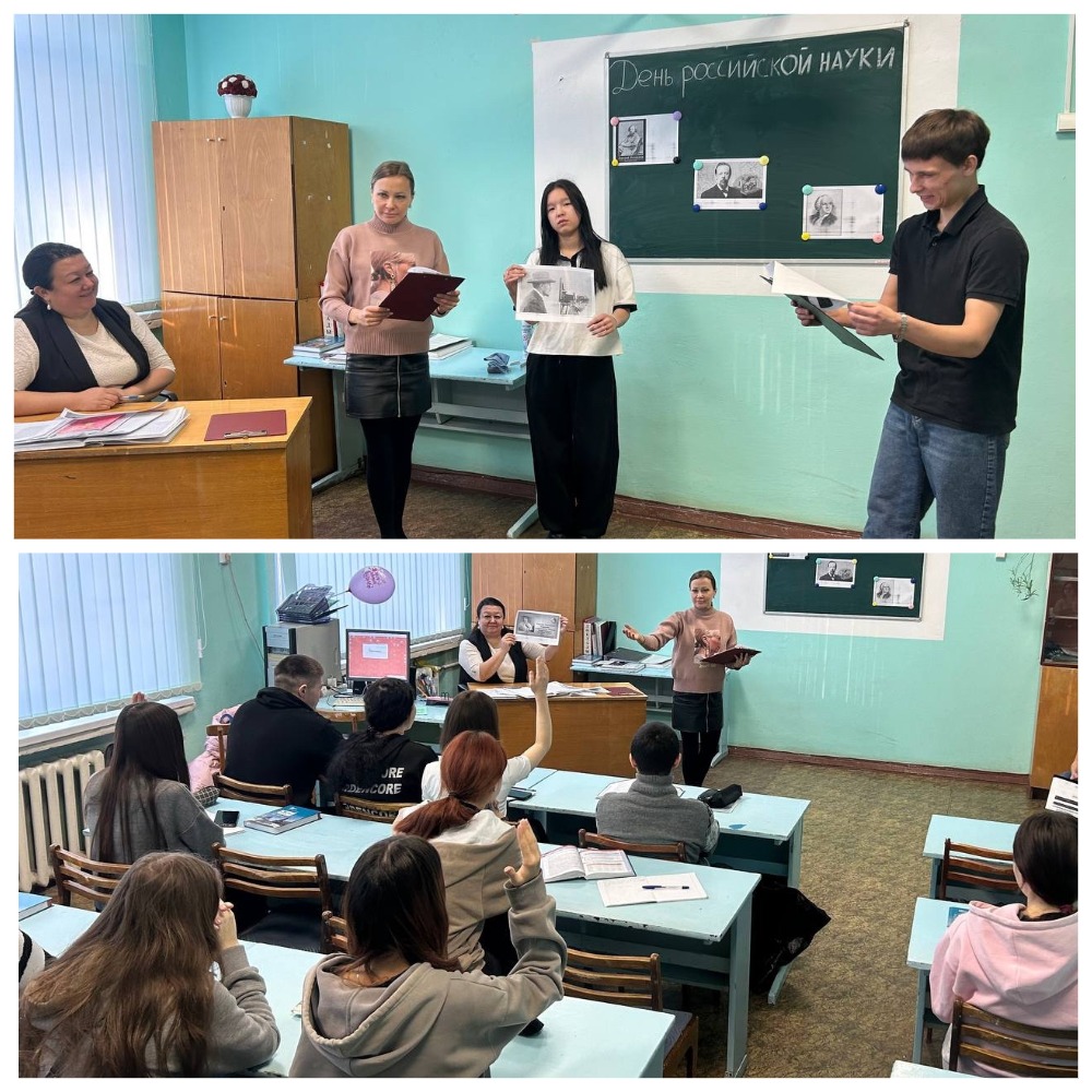 На уроке истории педагоги Абдуллина Р.Х., Дюстер В.В. в группах 12,13 провели викторину, рассказали ребятам о истории и традиции праздника День российской науки, который ежегодно отмечается 8 февраля.